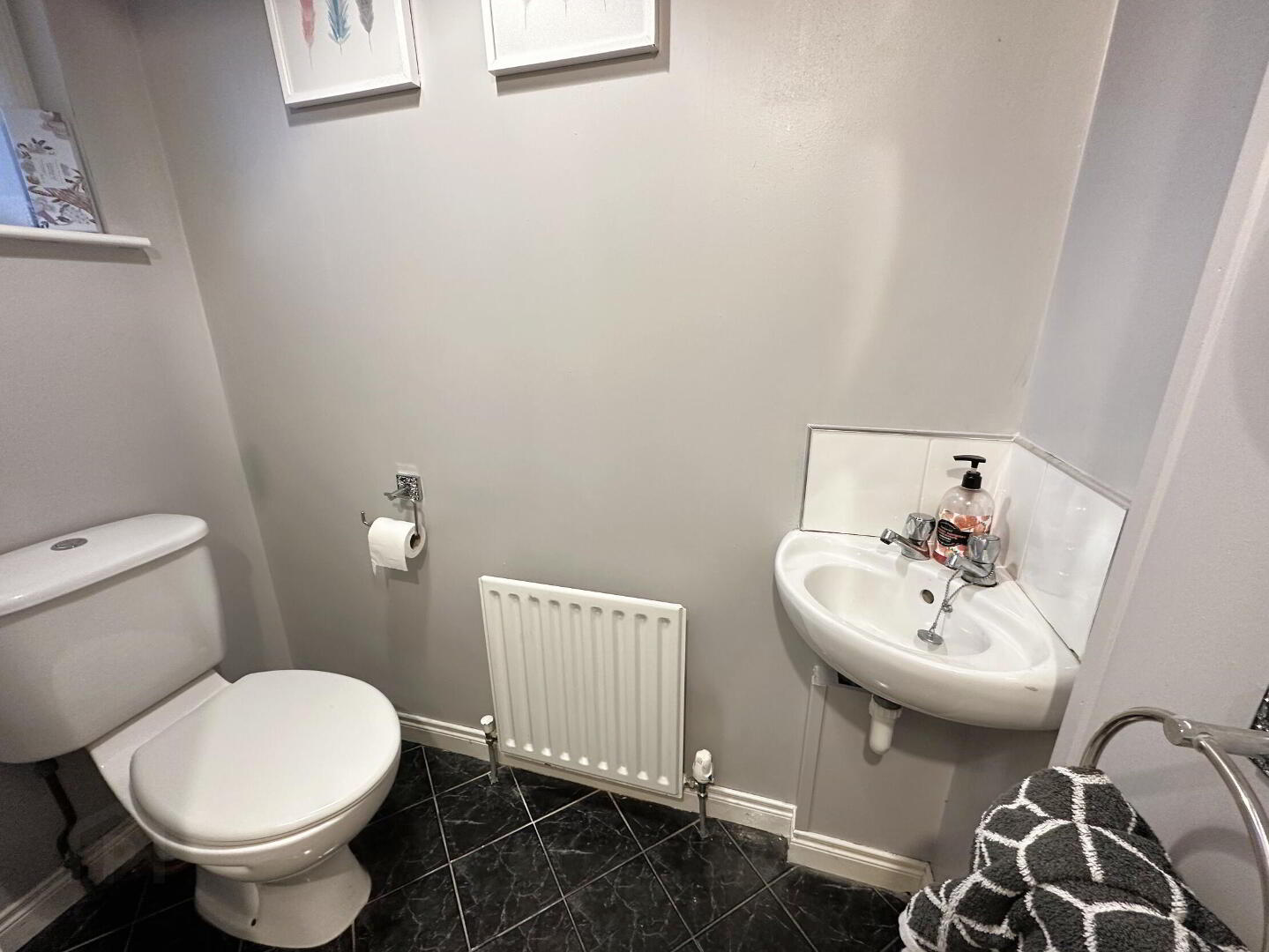 - With low flush WC and wash hand basin, tiled floor, 1 radiator.