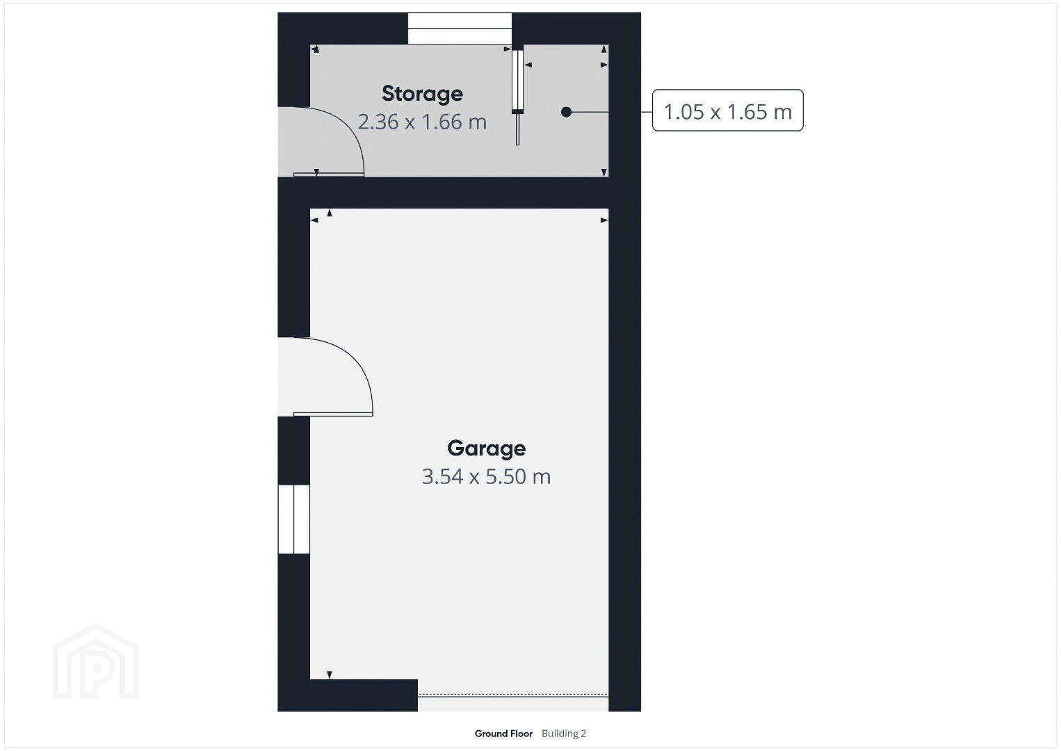 - Up and over door. Storage rooms off (2.36 x 1.66 m / 1.05 x 1.65m)