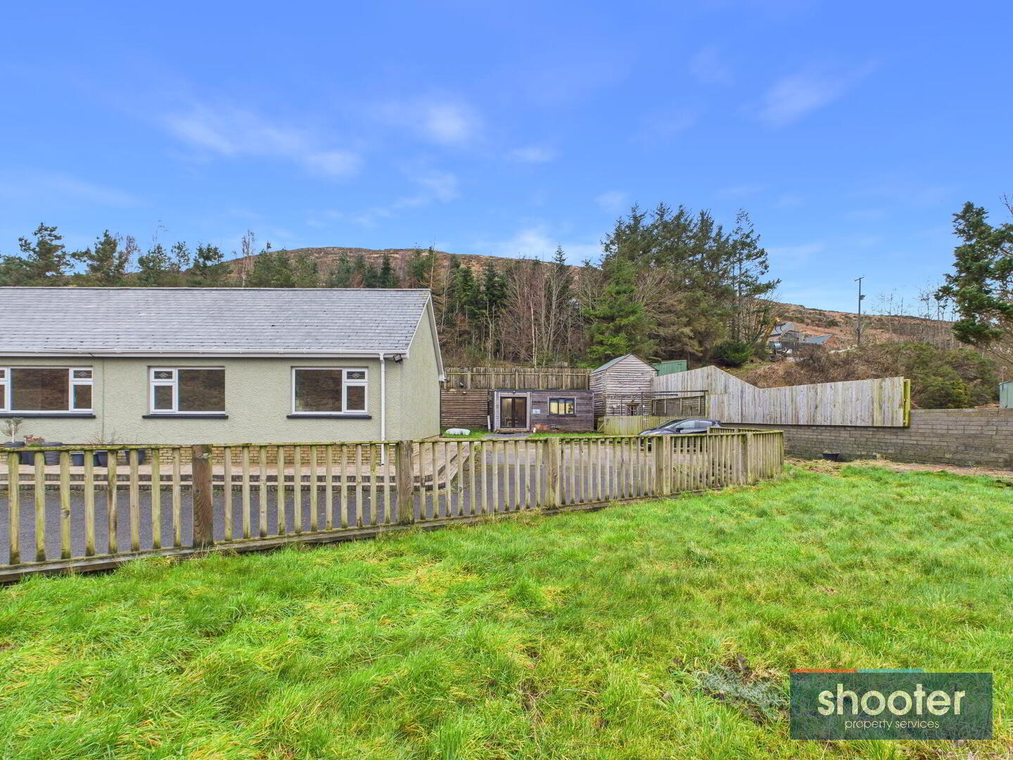 Large tarmacadam driveway. Ample parking to front, side and rear of property. Elevated large grass lawns overlooking beautiful countryside. Paved patio areas with mature flower beds. Raised decking with picnic table area and 2 40ft storage containers hidden beneath. Outbuildings plumbed and wired. Currently being used a dog grooming business. Outside water tap, lights and washing line.