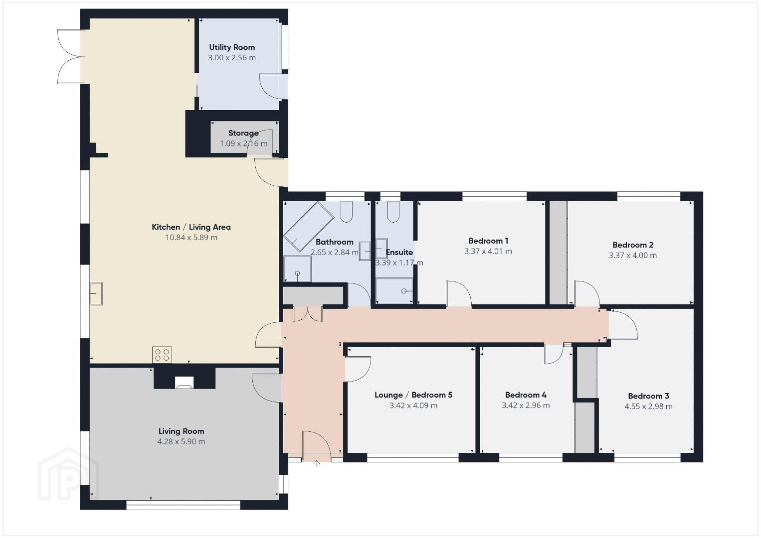 Lounge / Bedroom 5 11' 3'' x 13' 5'' (3.42m x 4.09m)