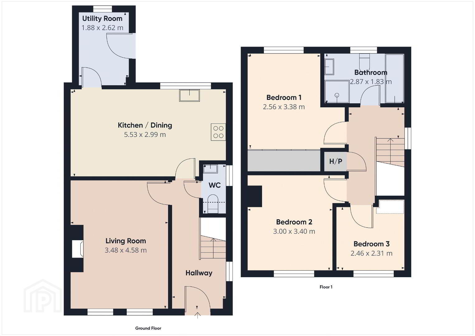 Bedroom 1 8' 5'' x 11' 1'' (2.56m x 3.38m)