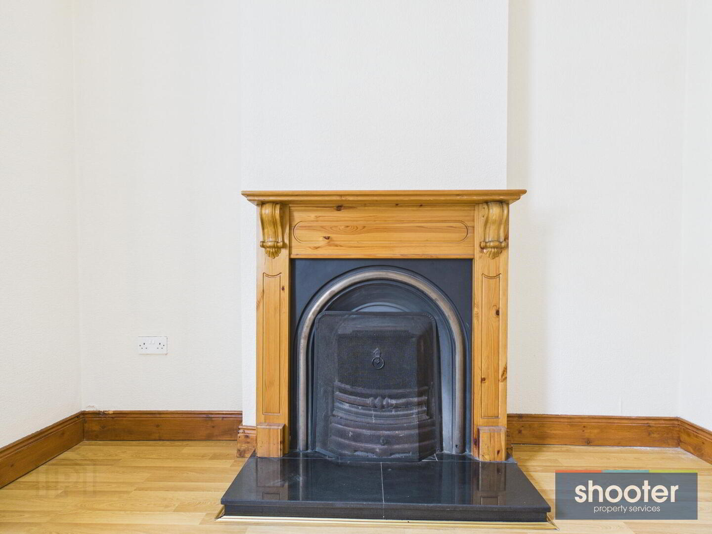 - Bay window, open fire, tiled hearth, decorative inset wood surround and mantle. Storage cupboard off. Laminate flooring