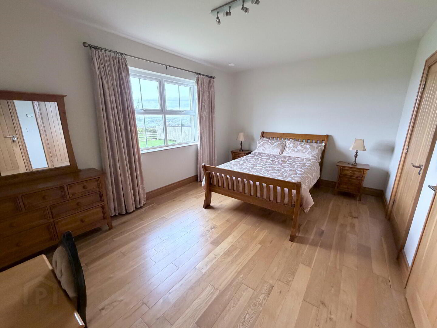 - Oak wooden floor, built-in robe, PVC double glazed patio doors to balcony.
