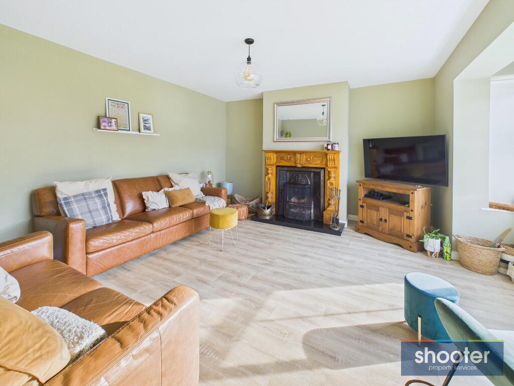 - Bay window. Cast iron open fireplace with granite hearth and wood surround / mantle. Television point and vinyl floor.