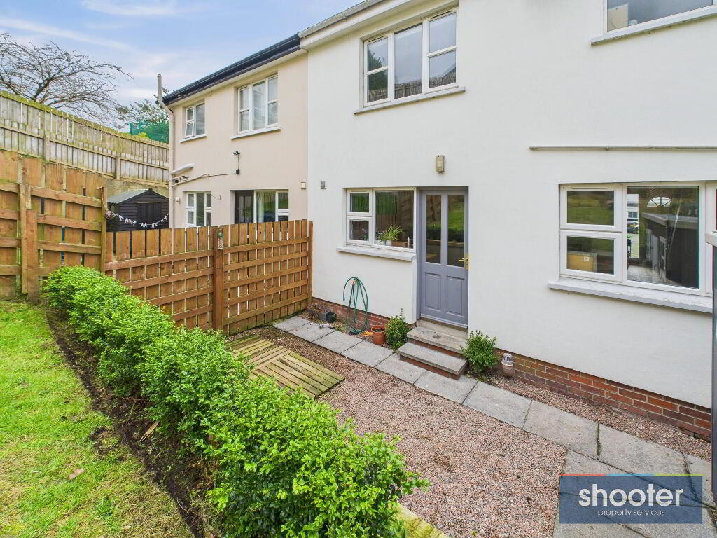 - Tarmacadam driveway with parking area for 2 cars. Large grass lawn to the front. Enclosed rear garden. Paved patio area with decorative stones and wooden decking. Stepped up garden with hedgerow and flower bed boundaries. Garden shed, watertap and outside light.