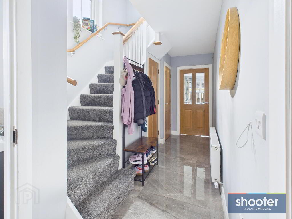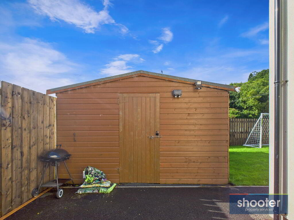 - Spacious bitmac driveway providing parking to the front and side of the property. The enclosed rear garden features gated side access, a well-maintained lawn, a paved patio area, and bitmac pathways surrounding the perimeter of the house. Concrete base in place, previously used for a dog pen. Additional benefits include external lighting and an outdoor water tap.