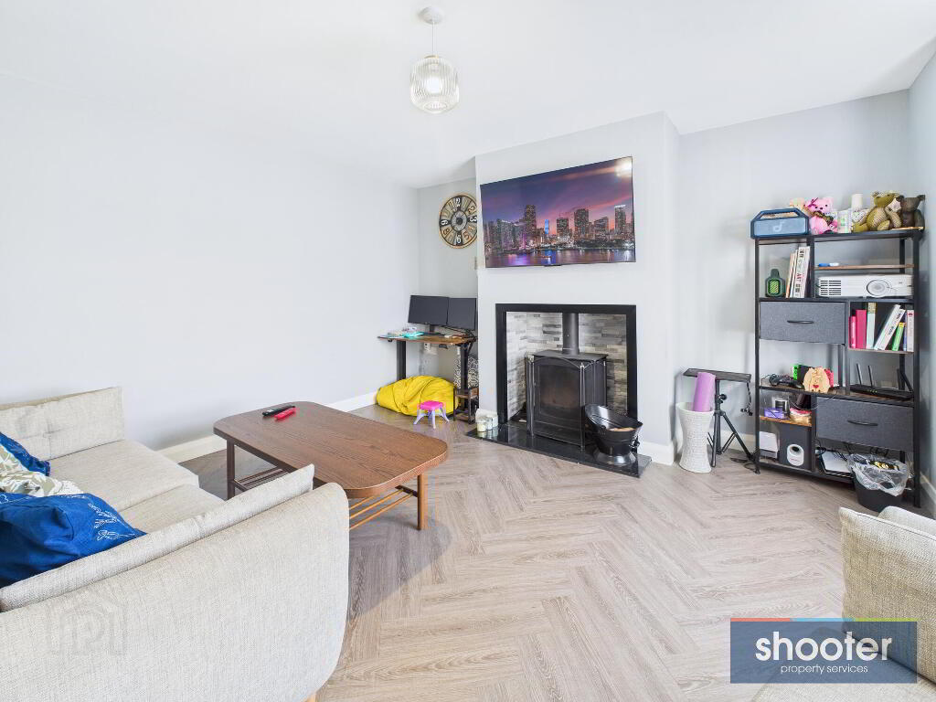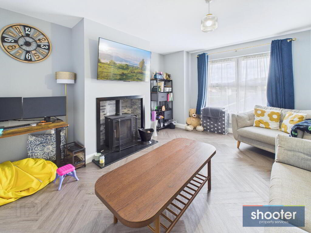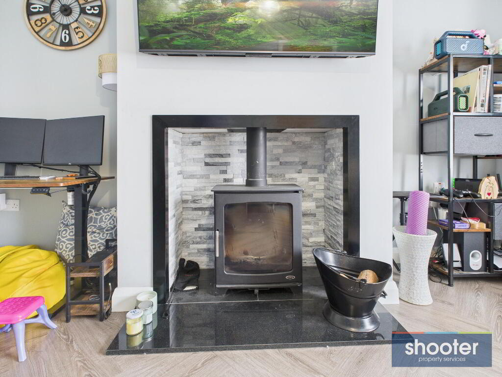 - Bay window. Feature multi-fuel stove with marble hearth and white slate fireplace chamber. Television point and laminate floor.