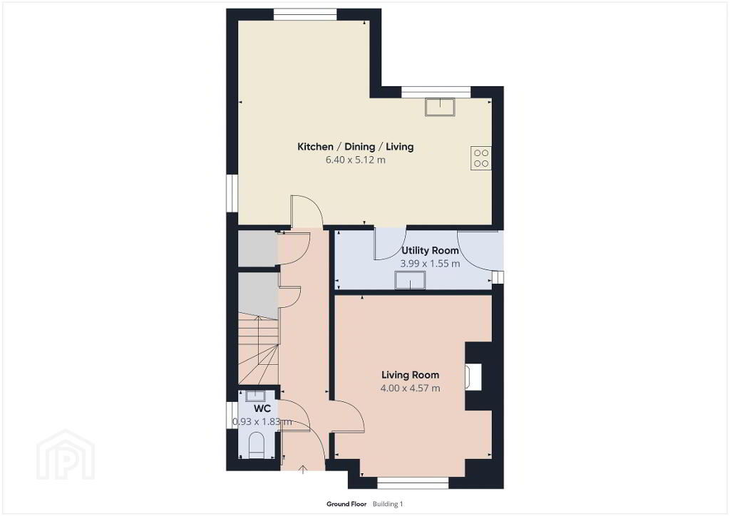 - Utility room 13' 1'' x 5' 1'' (3.99m x 1.55m)