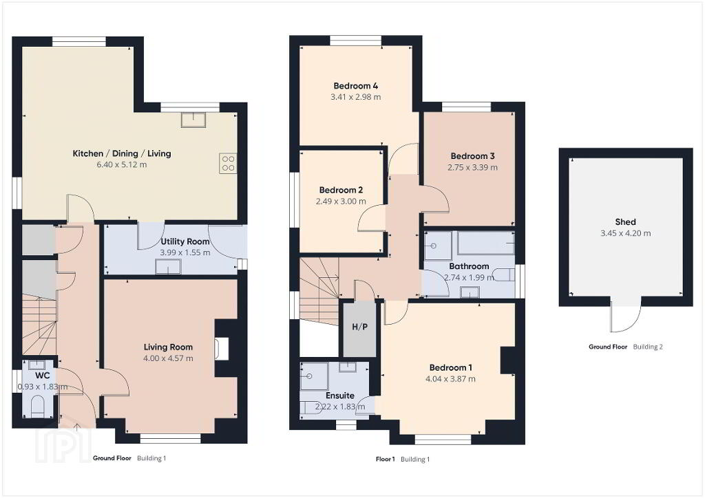 - Shed 11' 4'' x 13' 9'' (3.45m x 4.20m)