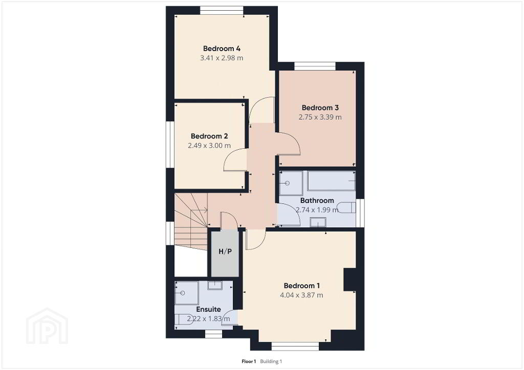 - Bedroom 1 13' 3'' x 12' 8'' (4.04m x 3.87m)