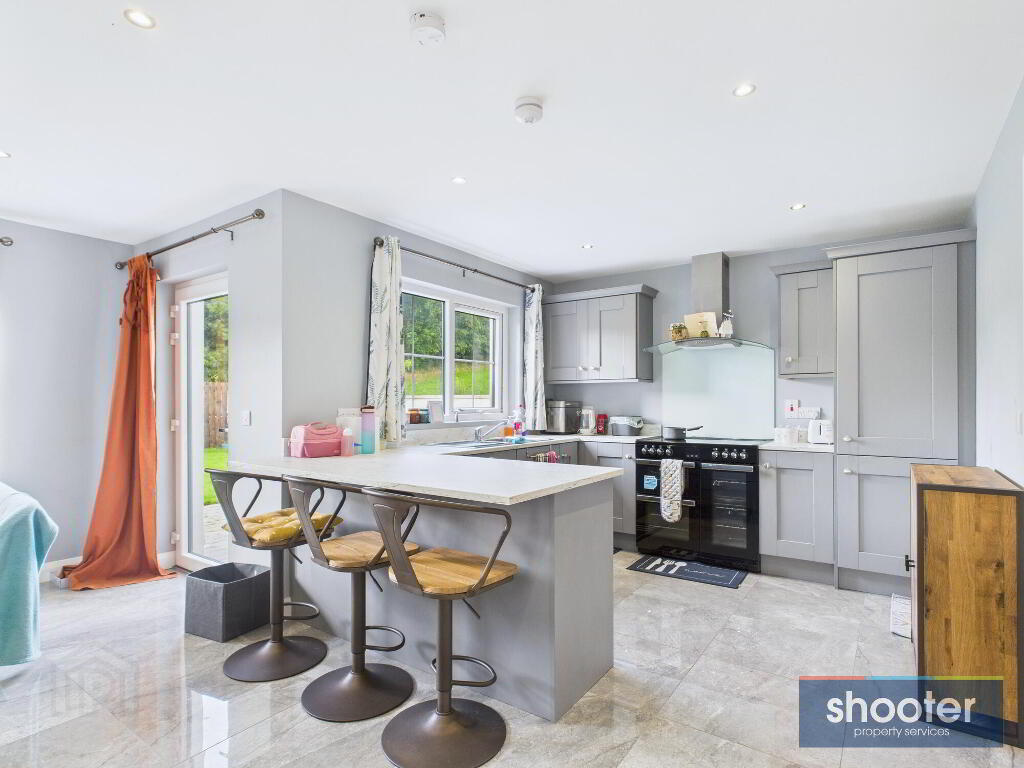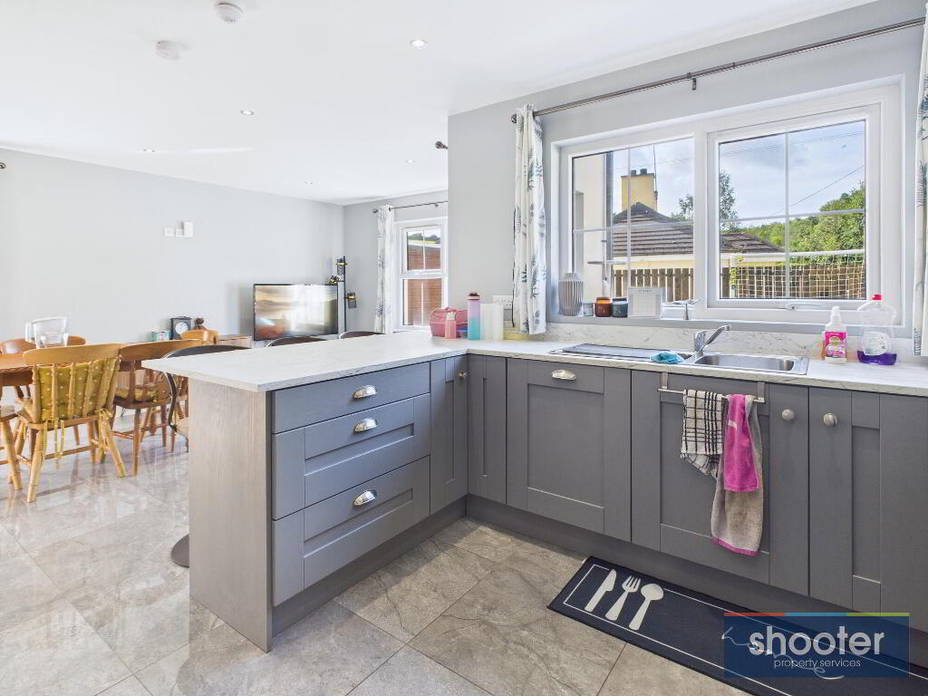 - Open plan. Modern range of high and low level units incorporating 1 1/2 stainless steel wash hand basin, breakfast bar, integrated fridge-freezer, dishwasher, cooker and extractor fan. Television point and recessed ceiling lights. Ceramic tile floor. PVC door to rear patio.