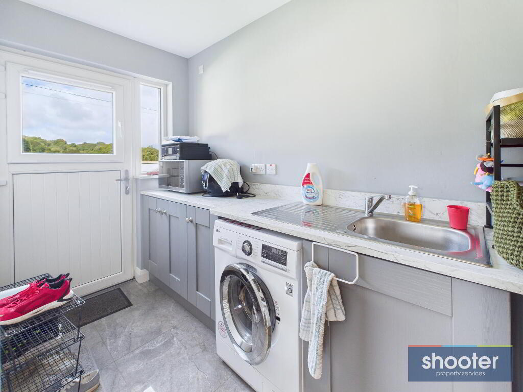 - Range of fitted units with stainless steel sink unit. Space for washing machine and tumble dryer. Extractor fan and ceramic tile floor. PVC door to side of property.