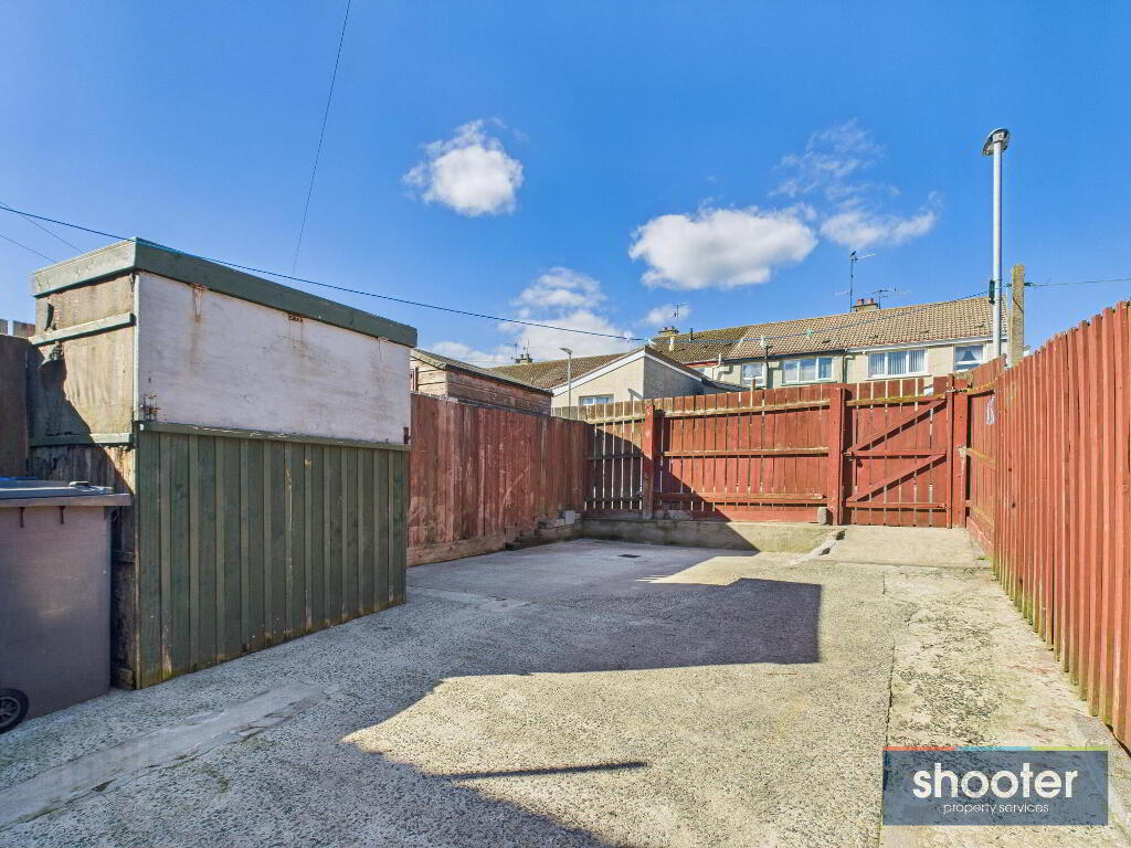 - Enclosed paved front porch with gated access, canopy and feature columns. Recessed ceiling lights. Enclosed rear yard x 2. Boiler house and out door bar. Wooden fence boundary. Outside light and water tap. Gated access to off street communal parking area.