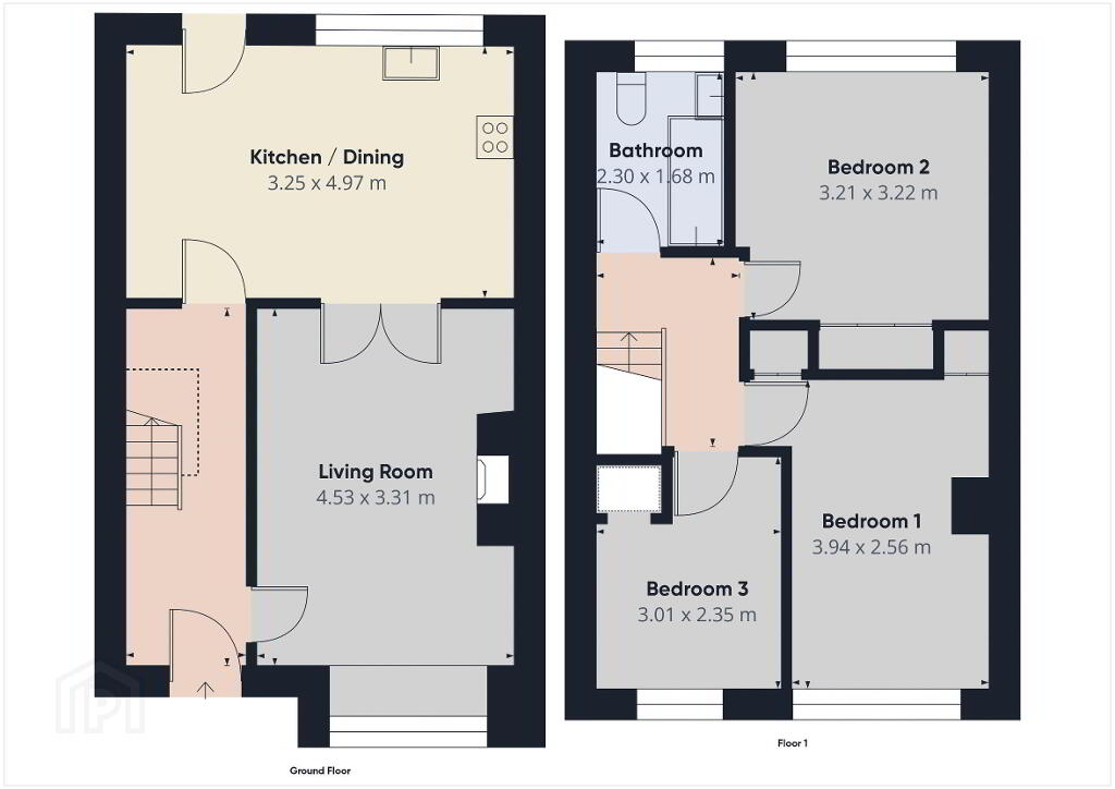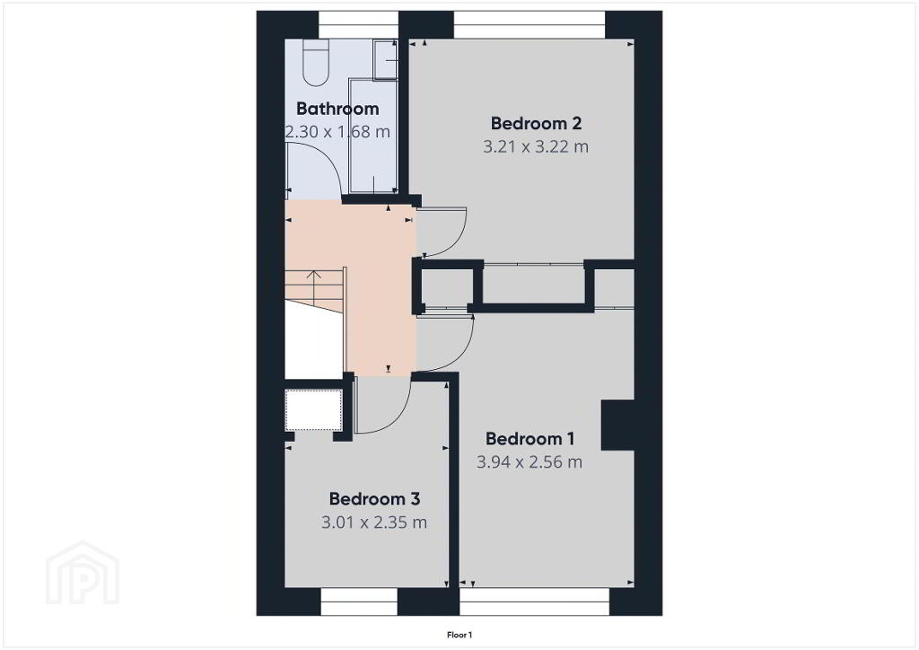 - Bedroom 1 12' 11'' x 8' 5'' (3.94m x 2.56m)