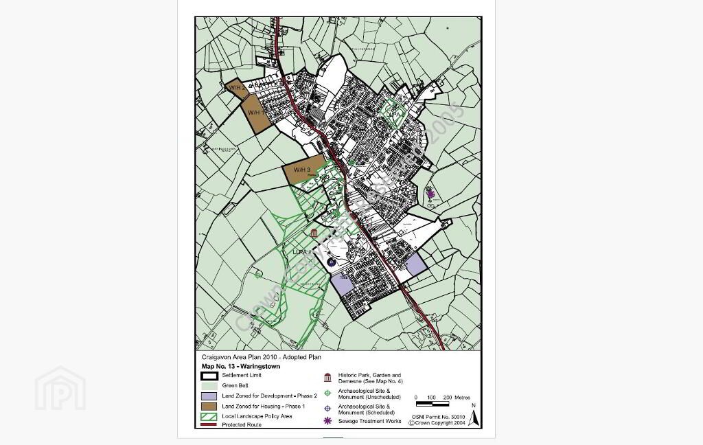 - Large swathes of the land border the Settlement Limit for Waringstown as per the current Craigavon Area Plan 2010. The two access points from Mill Hill are within the Settement Limit, see map included. There is a recently expired planning approval for replacement of former dwelling under reference LA08/2020/0371/O, expired 7th October 2025.