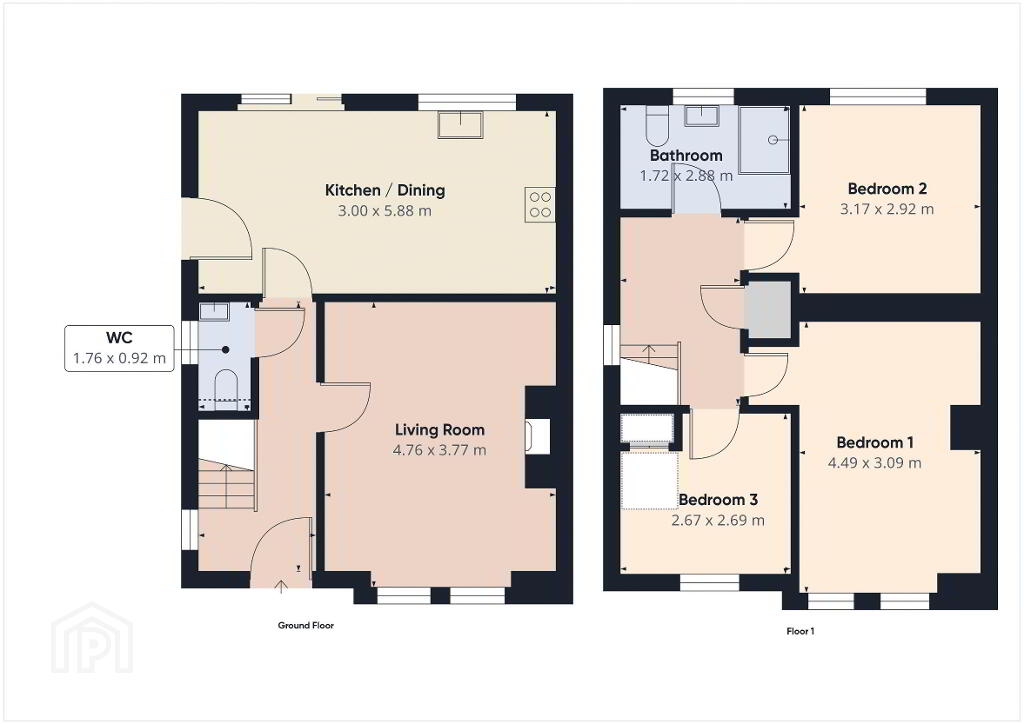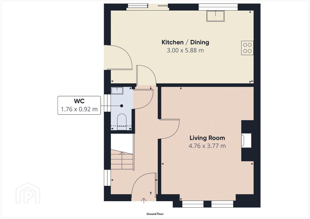 W.C. 5' 9'' x 3' 0'' (1.76m x 0.92m)