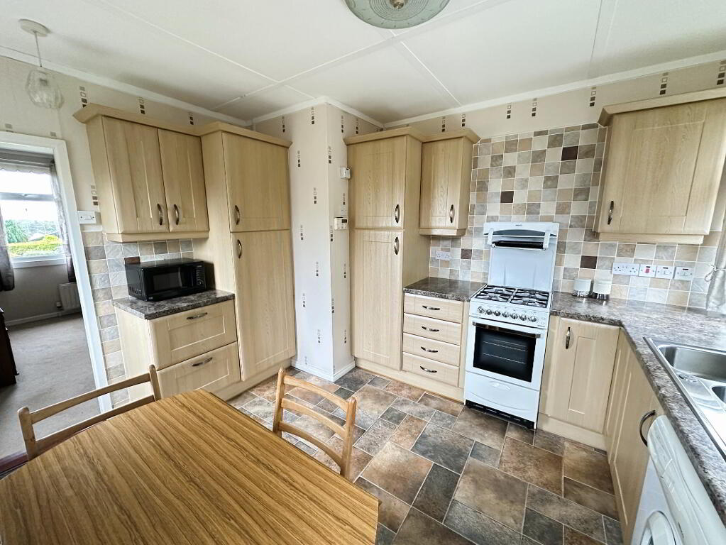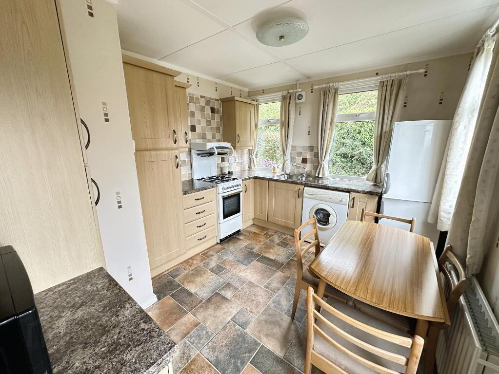- Full range of high and low level fitted modern units with 1 1/2 bowl stainless steel sink unit and mixer tap, cooker space, fridge/freezer space and plumbed for automatic washing machine. Part tiled walls, vinyl floor covering, PVC double glazed door to side, double radiator.