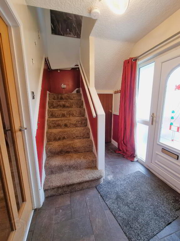 - uPVC front door and glazed side panel, understairs storage, radiator.