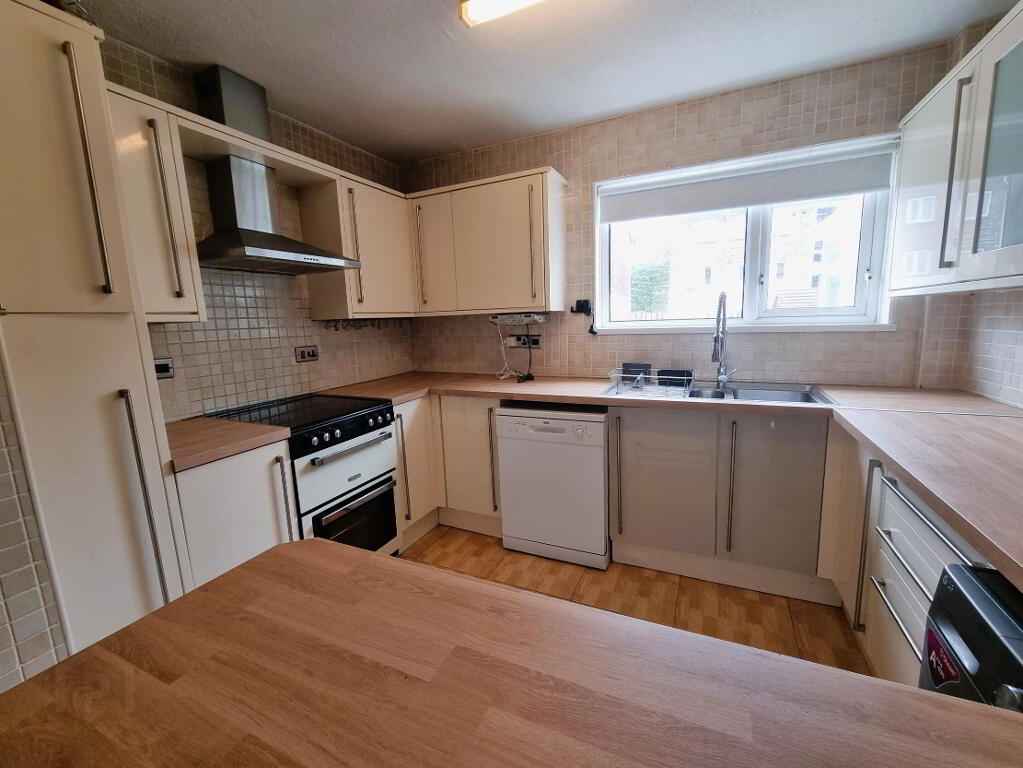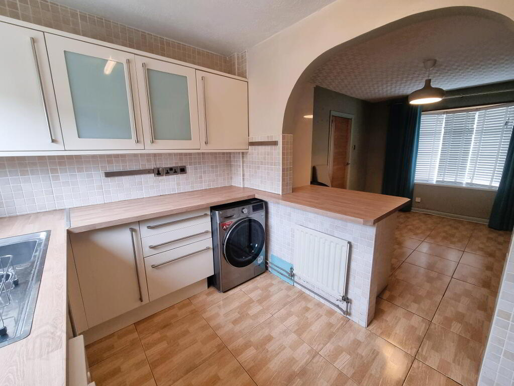 - Extensive range of high and low level units with complementary worksufaces, 1 1/2 bowl stainless steel sink unit and mixer tap, pot drawers, glazed display unit and breakfast bar. Cooker space, stainless steel extractor fan, plumbed for automatic washing machine, part tiled walls, ceramic tiled floor, radiator.