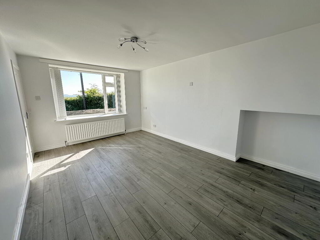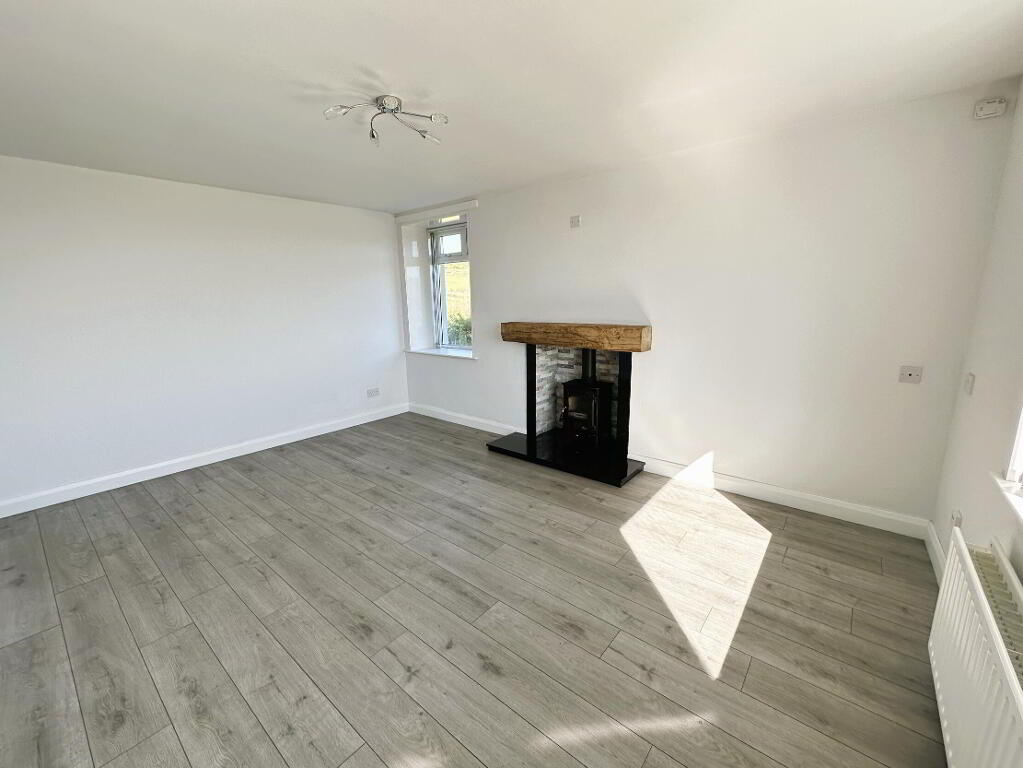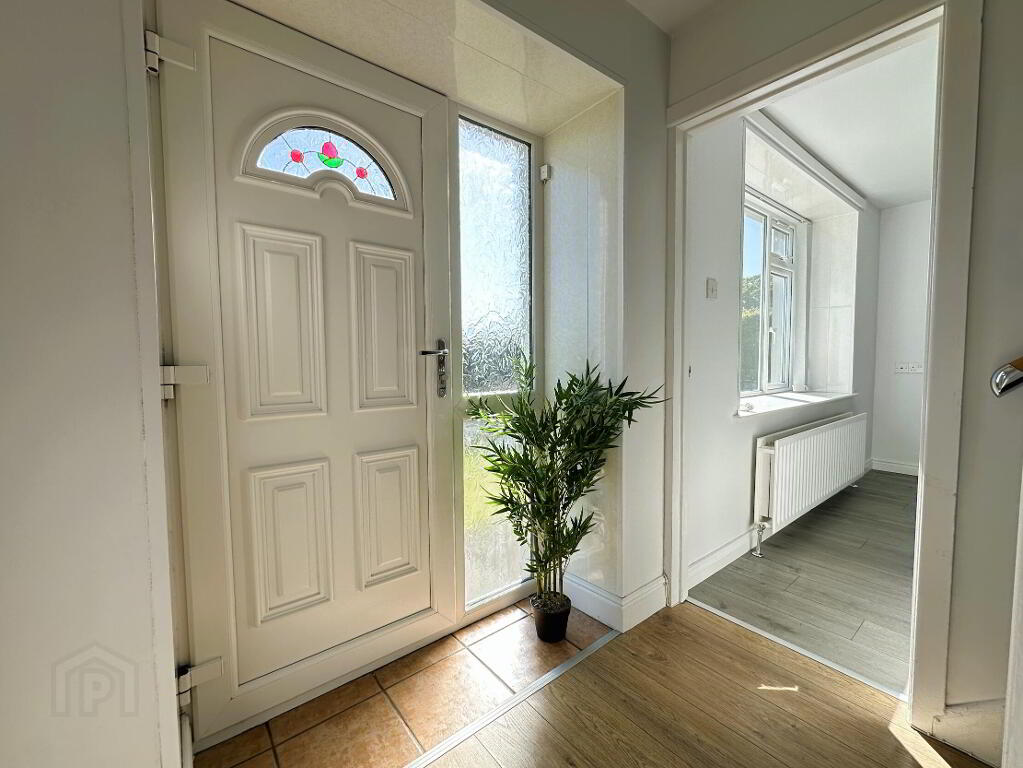 PVC front door with double glazed side screen, laminate wooden floor, 1 radiator.