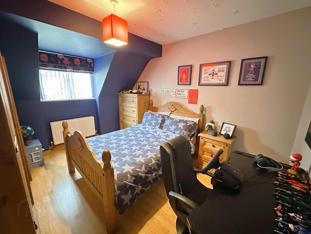 - Laminate wooden floor, feature wall panelling, TV point, 1 radiator.