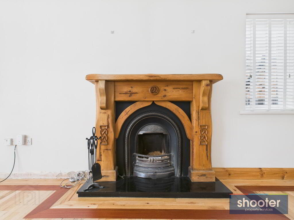 - Bay window. Cast iron fireplace with decorative inset, tile hearth, wooden surround and mantel. Television aerial, television point and telephone point. Hardwood floor.