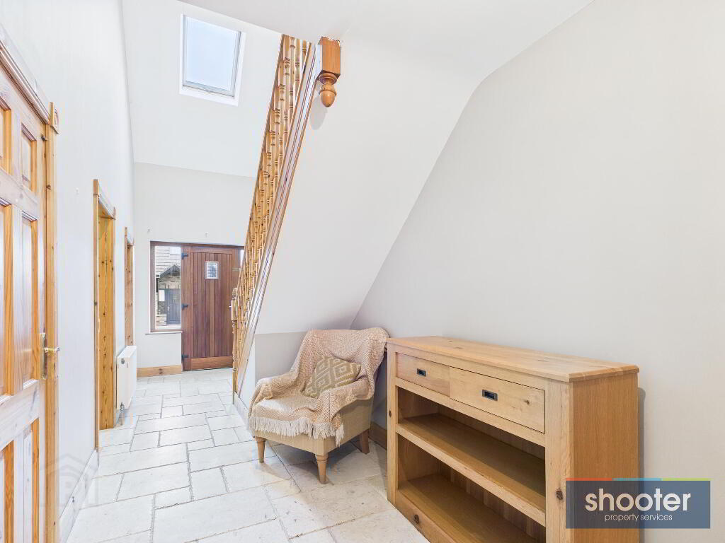 - Hardwood door with side screens. Double height ceiling with velux window. Storage cupboard off. Ceramic tile floor.