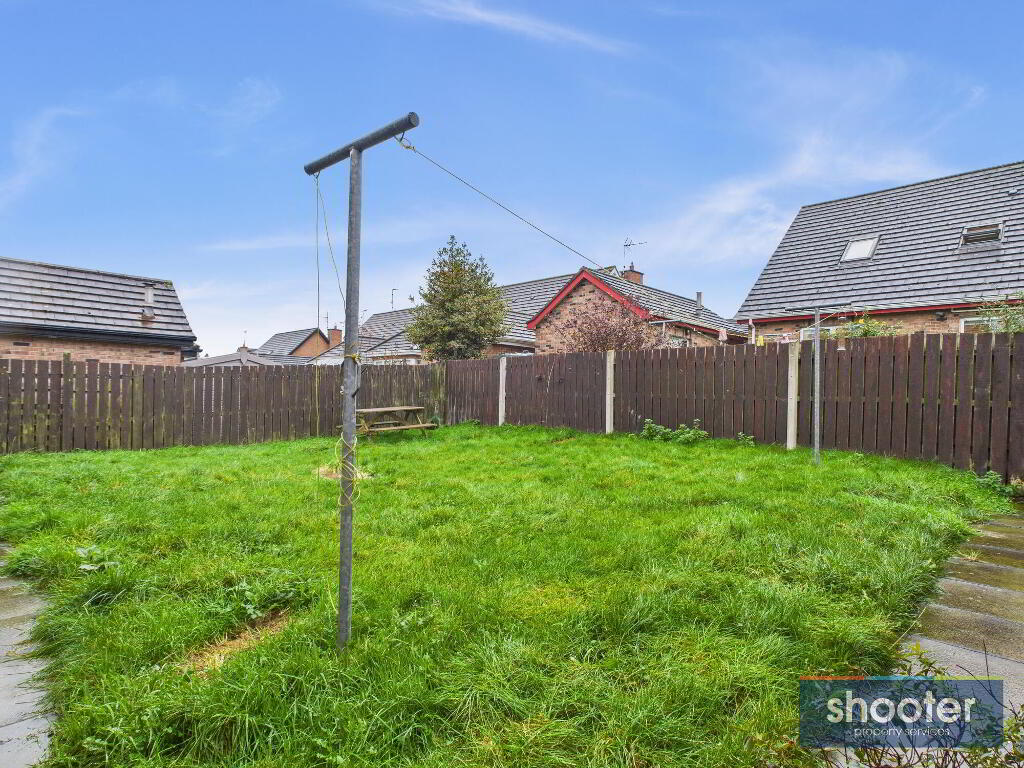- Taramacadam driveway with parking to side of property. Neat front lawn. Gated access to either side. Enclosed rear garden with large grass lawn. Washing line, water tap and outside lights.