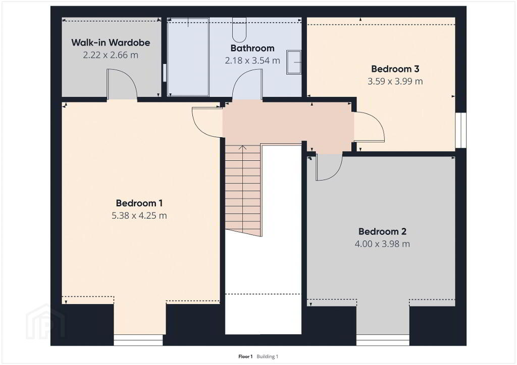 - Bedroom 1 17' 8'' x 13' 11'' (5.38m x 4.25m)