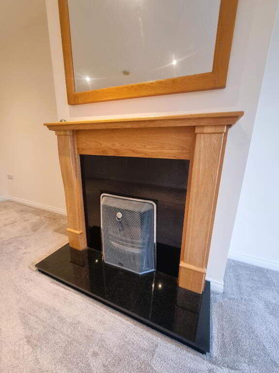 Feature fireplace suitable for an open fire, recessed lighting, radiator.