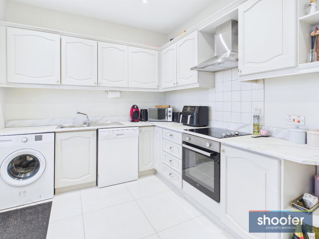 - Range of high and low level units incorporating stainless steel sink unit, integrated Beko oven, hob, free standing fridge-freezer, washing machine and dishwasher. Recessed ceiling lights. Ceramic tiled floor and part tiled wall. PVC rear door.