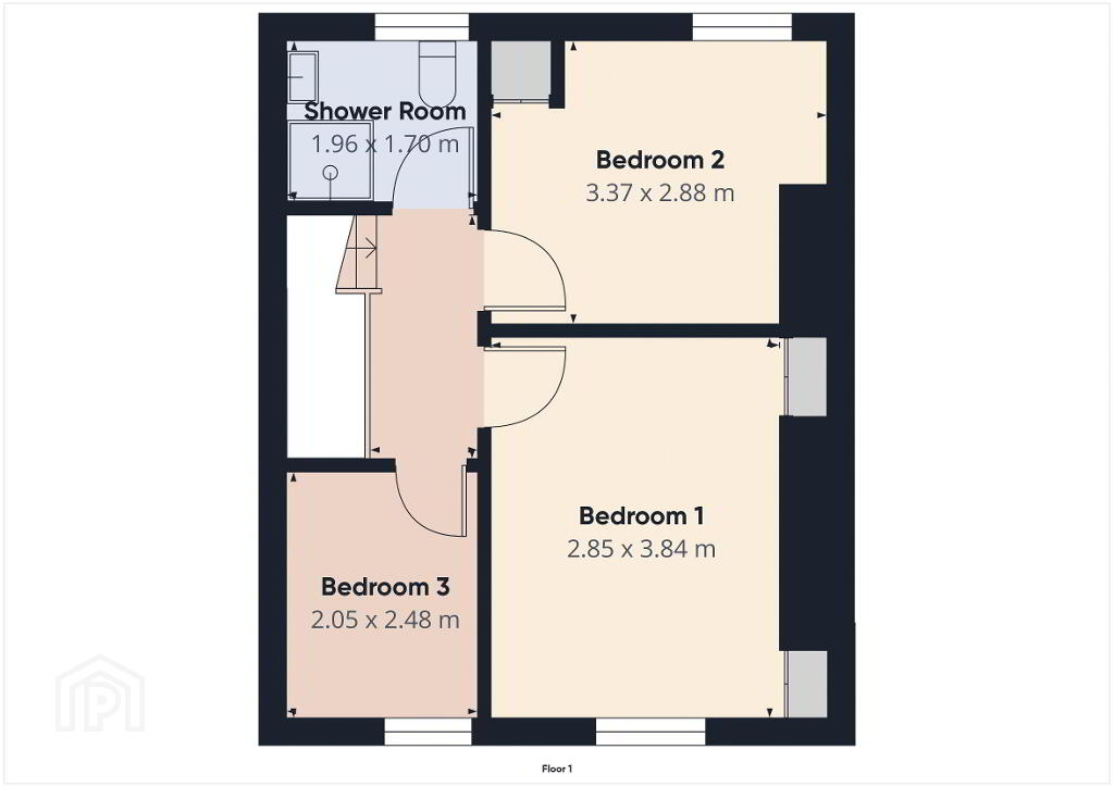 - Bedroom 1 9' 4'' x 12' 7'' (2.85m x 3.84m)