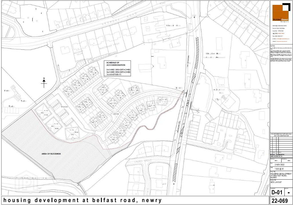 An exciting opportunity to acquire a well located potential development site on the Belfast Road in Newry. The property, known as Rocklands, is a period detached residence set on an expansive site extending to approximately 6.1 acres. It is situated within the development settlement limit for Newry and offers significant residential development potential (subject to planning). NI water has recently approved the waste water impact assessment for a proposed development of 56 residential units. For inspection and full details contact the selling agent.