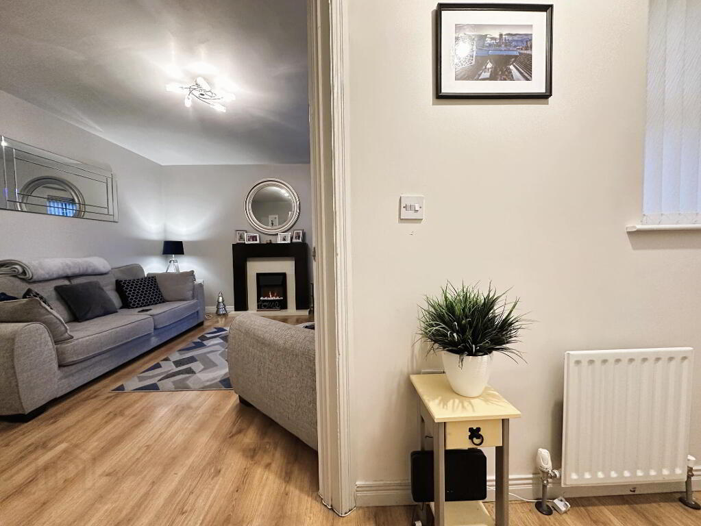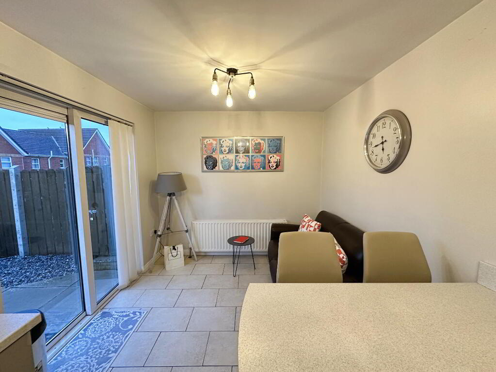 The accommodation comprises a lounge, kitchen/dining area, downstairs WC, three well-proportioned bedrooms, and a modern family bathroom.
