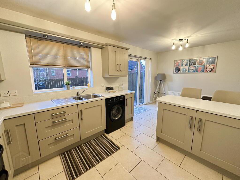 - Full range of high and low level modern fitted units with 1 1/2 bowl stainless steel sink unit and mixer tap and mixer tap, window pelmet with low voltage downlights, glazed backlit unit and breakfast bar. Appliances include double oven cooker, fridge/freezer and washing machine. Tiled floor, PVC double glazed patio doors to rear, double radiator.
