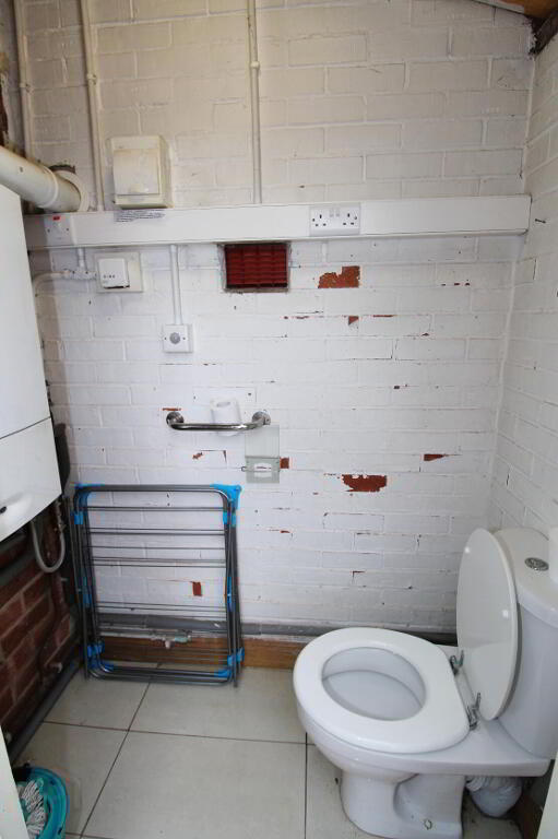 Low flush WC, gas fired boiler.