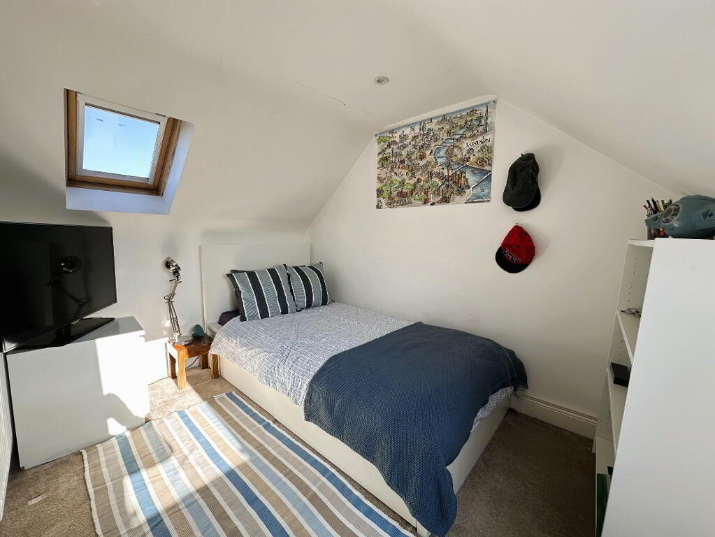 Built-in robe, access to eaves, 2 double glazed Velux rooflights, double radiator.