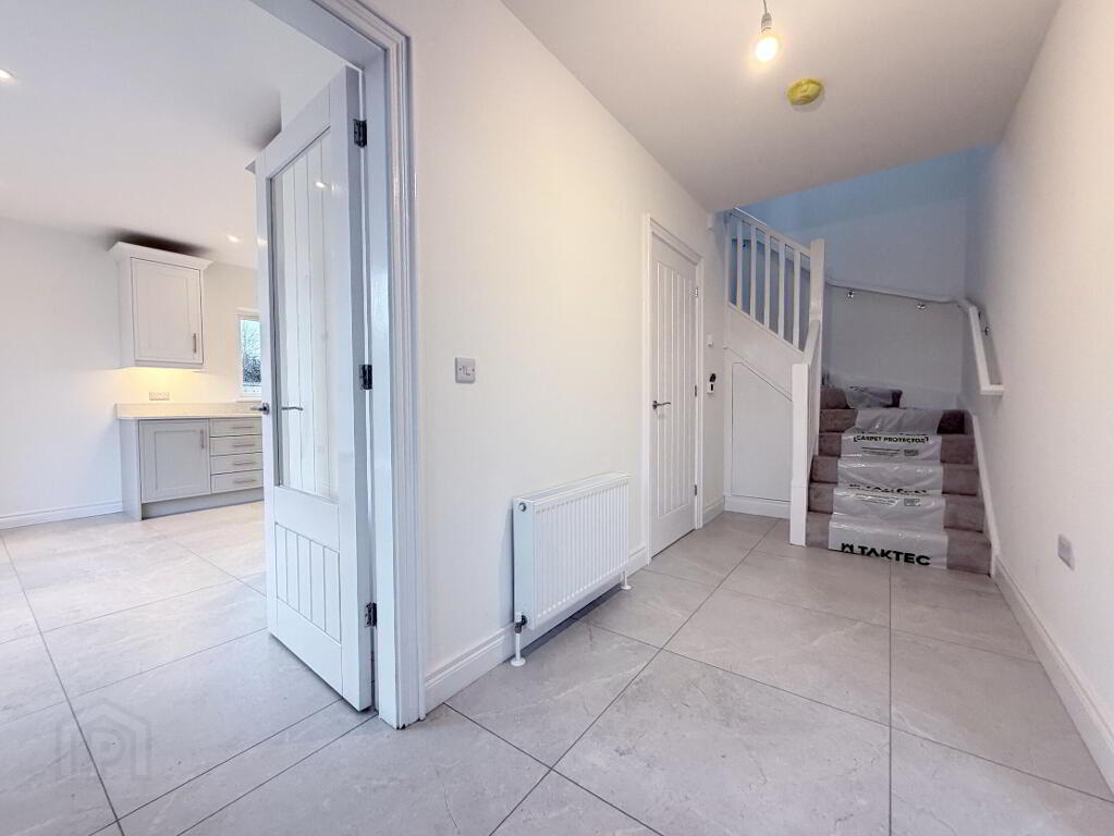 Composite glazed front door with double glazed side panels and fan light, fully tiled floor, double radiator.