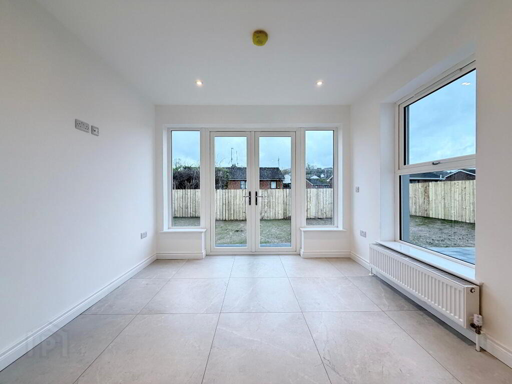 Recessed ceiling spots, tiled floor, PVC double glazed double doors to patio.