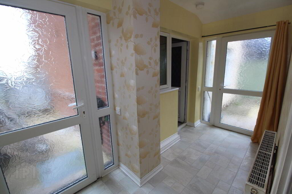 uPVC front door and glazed side panel, ceramic tiled floor, understairs storage, 1 radiator.