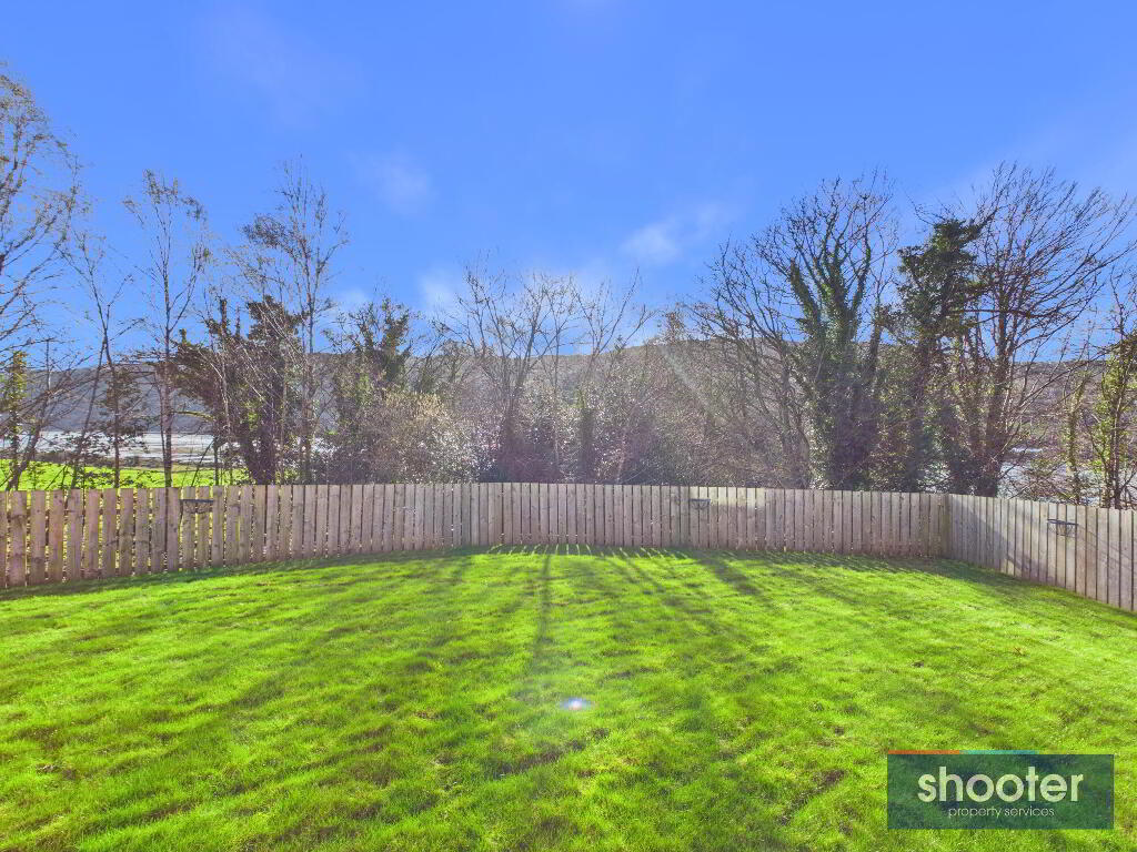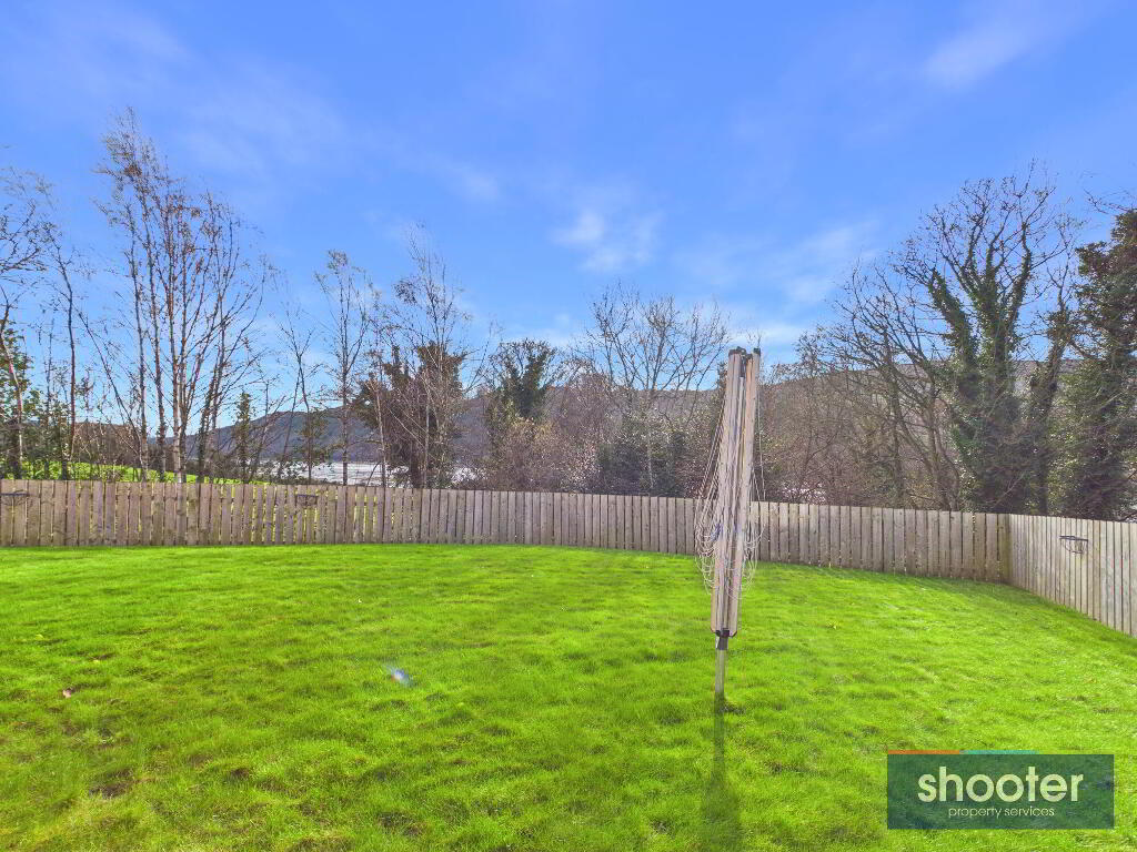 - Tarmacadam driveway with parking to the side. Granite paved path around house with decorative stone beds. Enclosed rear garden with gated access to either side. Large grass lawn with paved patio area to side. Water tap, outside tap and washing line.