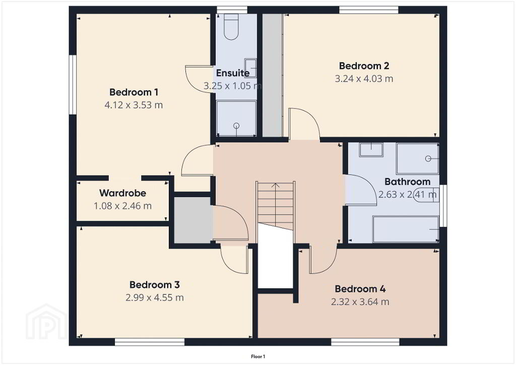 - Bedroom 1 13' 6'' x 11' 7'' (4.12m x 3.53m)