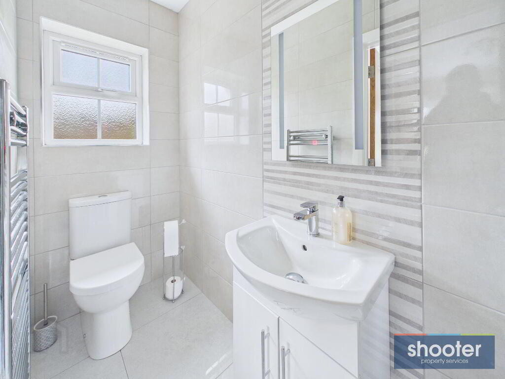 - Toilet, vanity wash hand basin, LED mirror and shower. Heated towel rail and extractor fan. Ceramic tiled floor and walls.