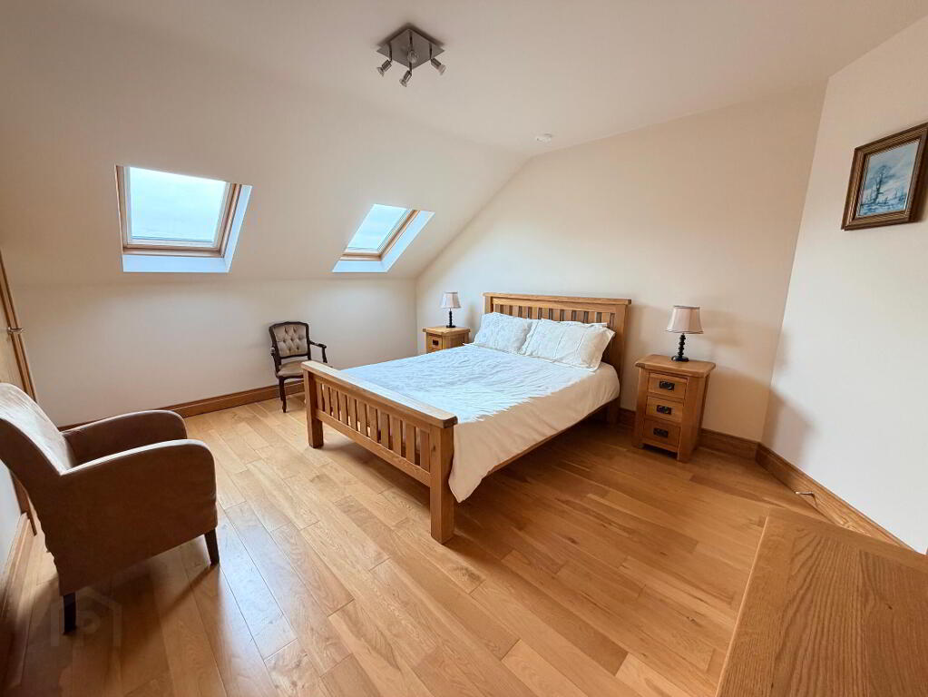 Built-in robe, oak wooden floor, twin double glazed Velux roof lights.
