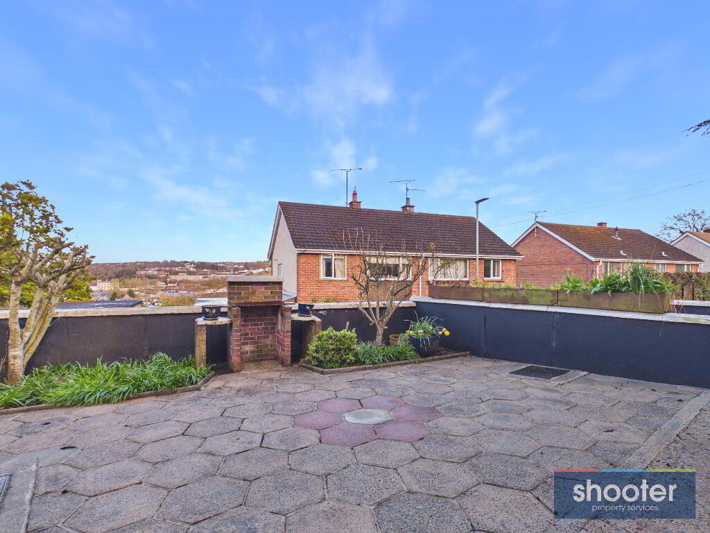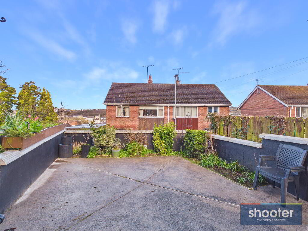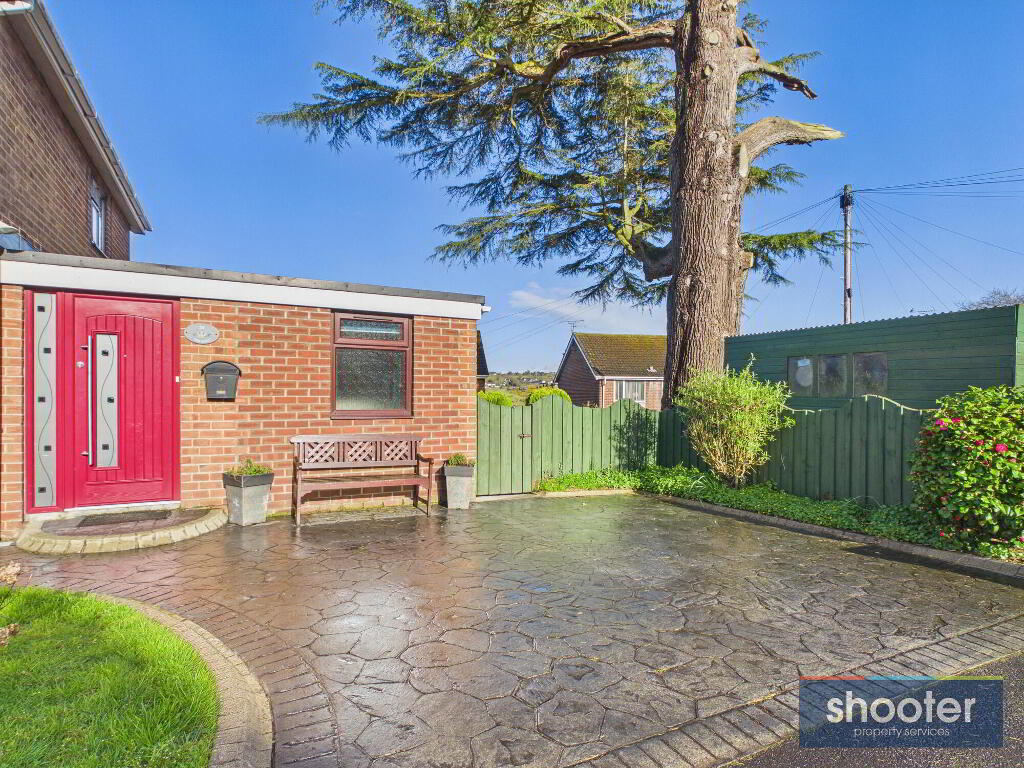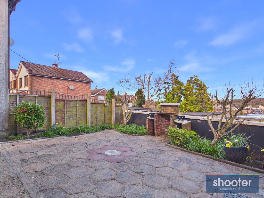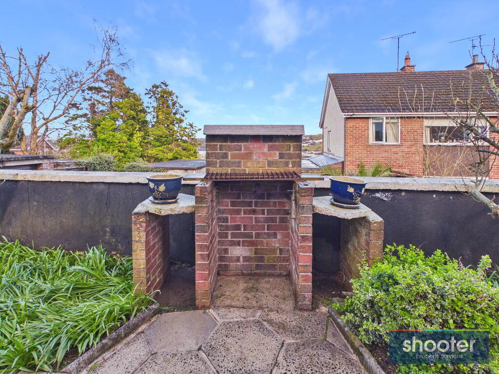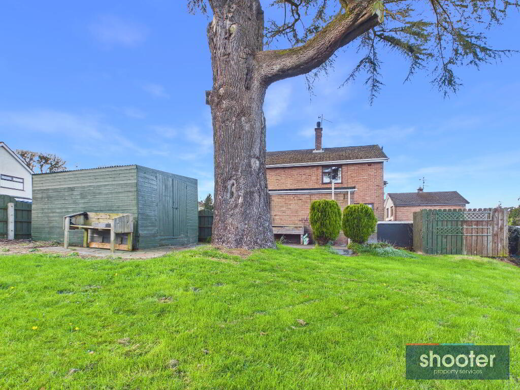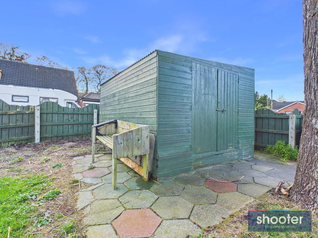 - Paved driveway with parking to front. Grass lawn. Gated access to either side. Enclosed paved patio with BBQ area and flower beds. Concrete patio area with surrounding flower bed. Large grass lawn with large garden shed. Water tap and outside light.