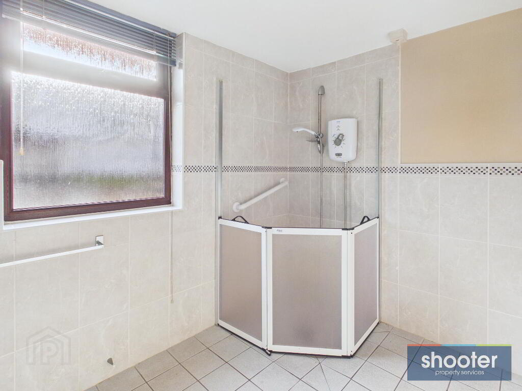 - Toilet, pedestal wash hand basin, walk-in shower with Triton electric shower unit. Extractor fan and vanity unit. Ceramic tiled floor and part tiled walls.