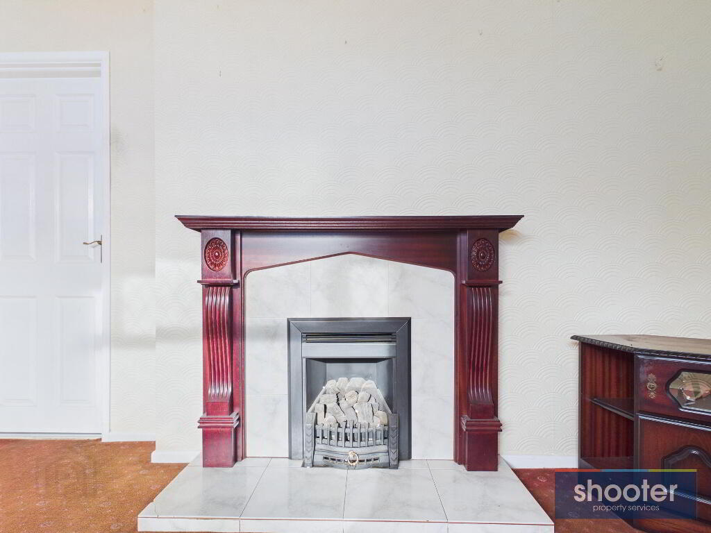 - Tile open fireplace with wooden surround and mantel. Television aerial and dimmer switch.