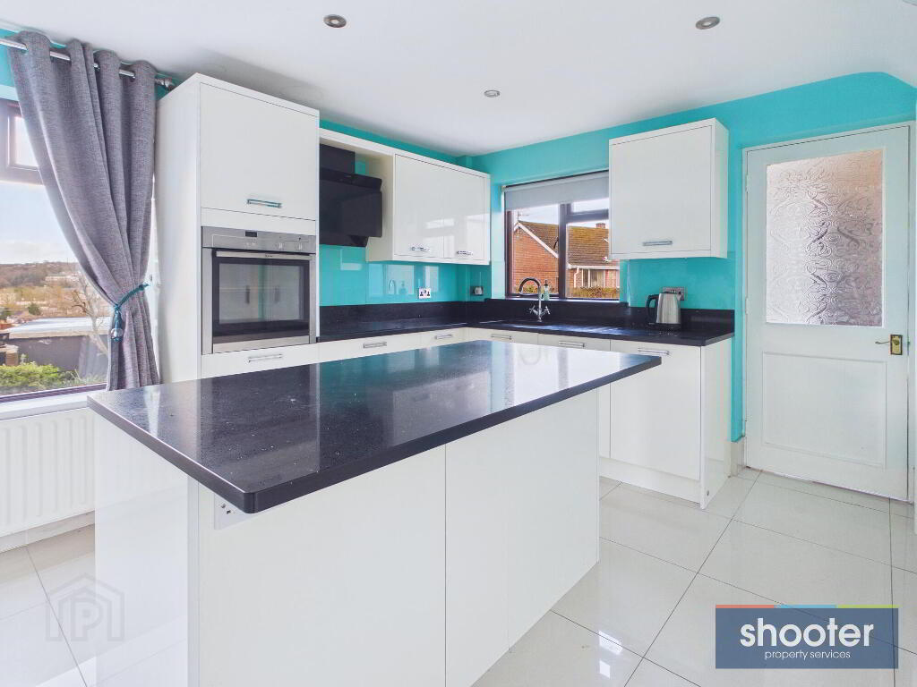 - Modern high and low level units with stainless steel sink unit, Neff oven, Neff touch hob, Faber extractor fan and space for fridge-freezer. Island with built-in units, storage cupboards off, telephone point and television aerial. Recessed ceiling lights and ceramic tiled floor.