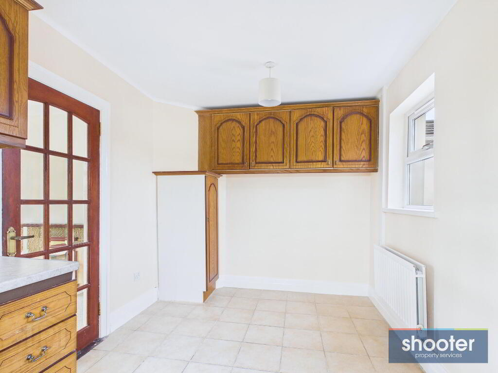 - Range of high and low level units incorporating a stainless steel sink unit and space for both a free standing fridge-freezer and cooker. Ceramic tile floor and part tiled walls.