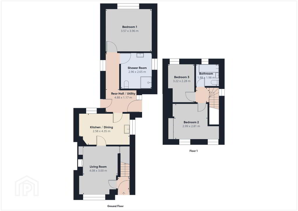 - Bedroom 1 11' 9'' x 13' 0'' (3.57m x 3.96m)